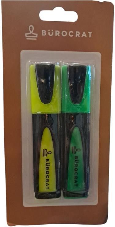 Bądź kreatywny razem z zakreślaczami Burocrat . Kompletny zestaw zawiera zakreślacze w żółtym i zielonym kolorze, aby każdy mógł z łatwością zaznaczać swoje notatki, dokumenty i strategie.