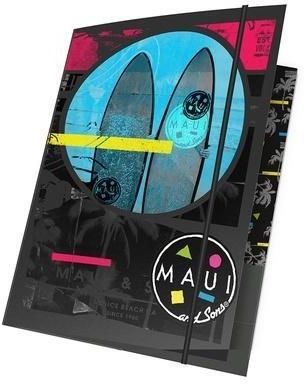 Teczka A4 Maui and Sons z gumką z zadrukowaną wewnętrzną okładką.
