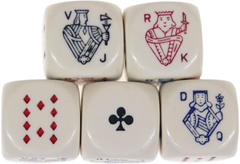 Standardowej wielkości, bardzo dobrze wykonane kości dla wielbicieli pokerowej gry w kości. Najstarsze kości do gry datuje się na 2000 r p.n.e. Pierwszych znalezisk dokonano w grobowcach egipskich. Kości były również bardzo popularne w starożytnym Rzymie. A jak jest dzisiaj? Spytajcie wielbicieli …