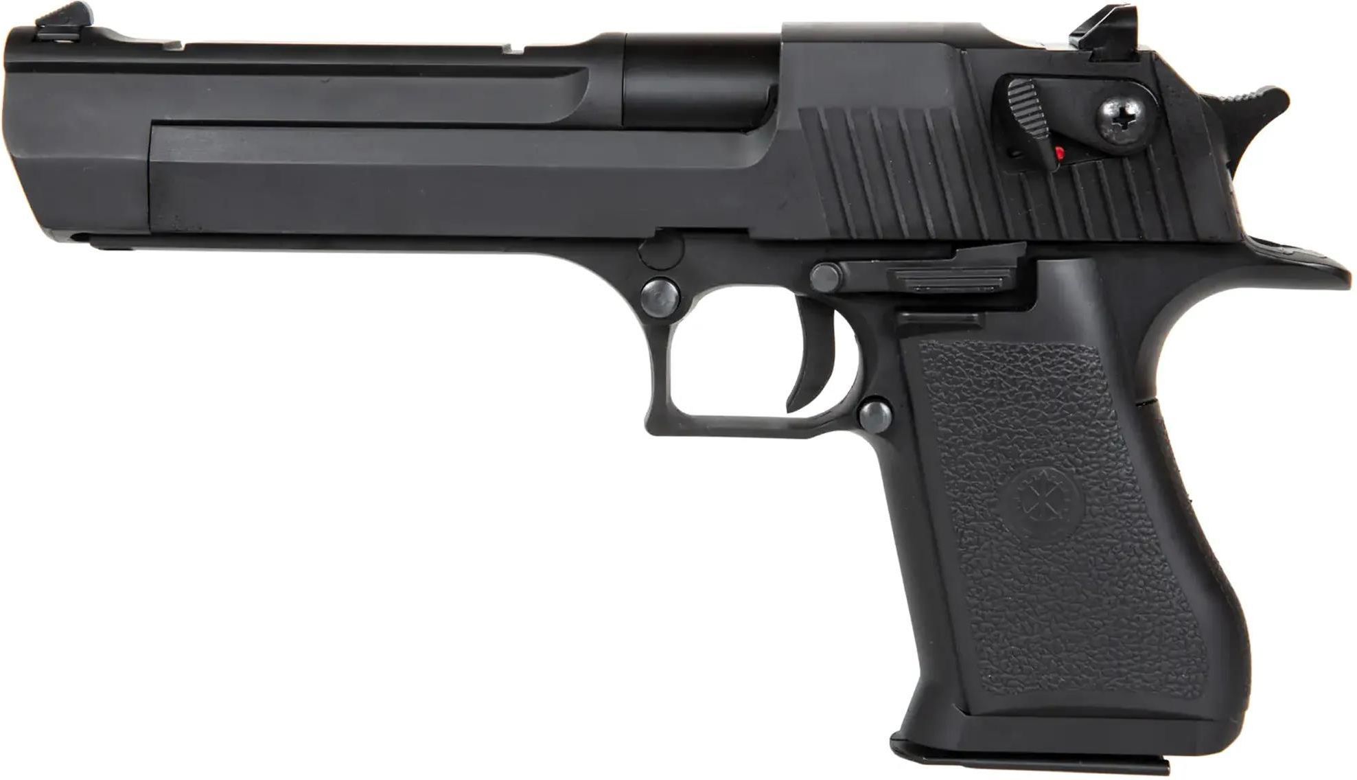 Replika najsłynniejszego pistoletu z przełomu XX i XXI wieku, przez wielu uznanego za najsilniejszy półautomatyczny pistolet - Desert Eagle .50AE. Pistolet wykonany został z tworzywa sztucznego. Do produkcji magazynka oraz lufy zewnętrznej wykorzystano metal.