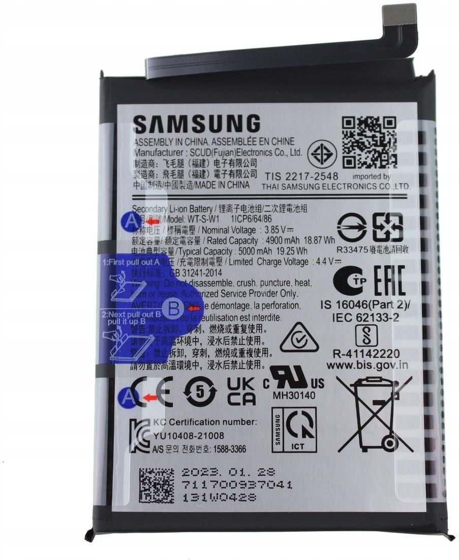Oryginalna Bateria GH81-23539A do Samsung Galaxy A14 SM-A145 SERVICE PACK Przewaga oryginalnej baterii, nad tańszymi zamiennikami ✅ Gwarancja jakości i bezpieczeństwa ✅ Wysoka wydajność i komfort użytkowania ✅ Pewność i zaufanie (gwarancja, certyfikaty) Specyfikacja Producent: Samsung Model: Galaxy A14 SM-A145 Oznaczenie producenta: GH81-23539A Pojemność: 5000mAh Oryginał: Tak Warto przeczytać, przed zakupem Bateria wymaga dodatkowej procedury adaptacyjnej - zazwyczaj wykonywanej przez profesjonalne serwisy - po "zwyczajnej wymianie" telefon nadal będzie miał zapisane logi z poprzedniej baterii. Podczas wymiany baterii może być również wymagane zresetowanie telefonu do ustawień fabrycznych. Nowy początek dla twojego telefonu Odzyskaj pełną wydajność i długotrwałe zasilanie swojego telefonu, wymieniając zużytą baterię na nową. Wybierając oryginalne części, masz pewność niezawodności i pełnej sprawności urządzenia. Nowa bateria zapewni dłuższy czas pracy telefonu, co przełoży się na komfort i pewność działania przez wiele godzin.