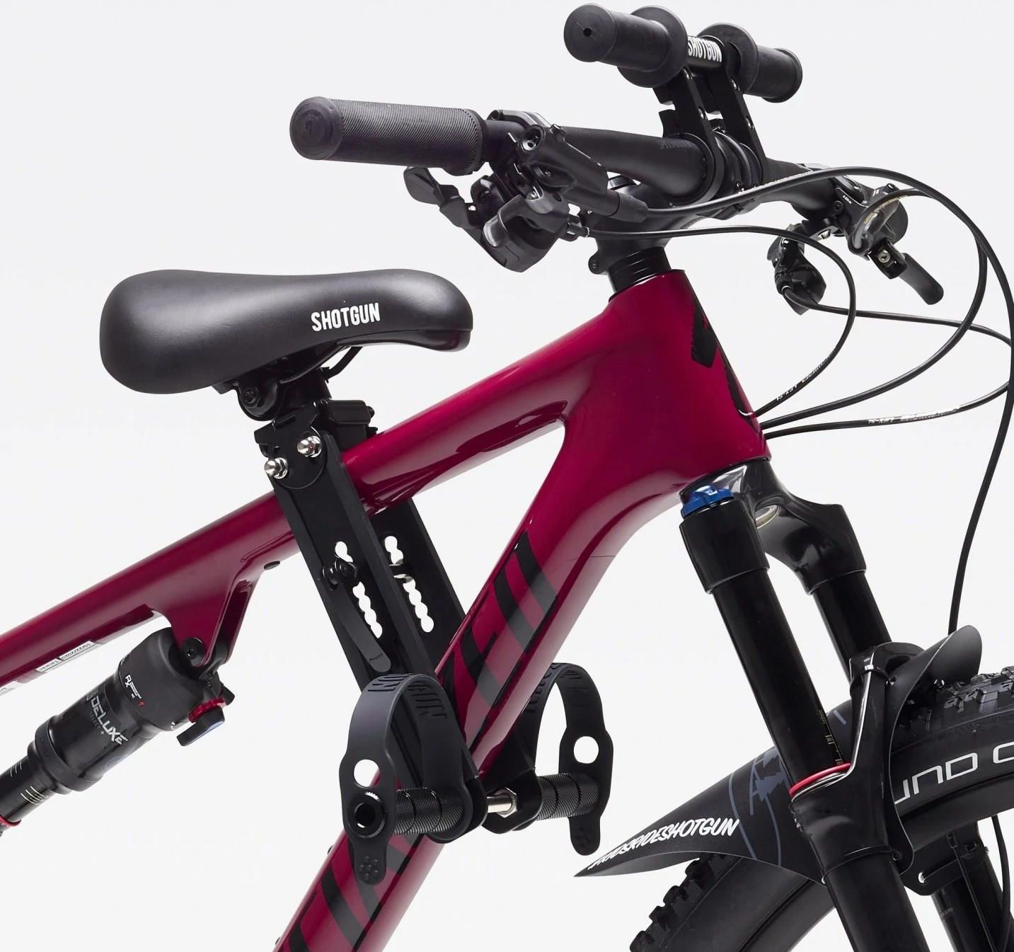 O siodełku dziecięcym - Kids Ride Shotgun + kierownica Koniec z nudą na rowerze z dzieckiem! Koniec z tradycyjnymi fotelikami czy ciężkimi przyczepkami. Teraz razem z dzieckiem można jeździć nawet po bike parkach czy na dłuższe górskie przejażdżki. Jazda na rowerze staje się przyjemniejsza dla wszystkich, a dodatkowo dziecko zaczyna uczyć się jazdy na rowerze w możliwie najbardziej naturalny sposób - za swoją własną kierownicą! Kierownica Shotgun zapewnia wygodny uchwyt dla małych rączek – i nie pozwala Twojemu drugiemu pilotowi bawić się przerzutkami, hamulcami czy regulowaną sztycą! siodełko dla dzieci od 2 do 5 roku życia gumowe osłony aby nie porysować ramy roweru (pasuje do aluminiowych i karbonowych ram) mini kierownica z gripami dla dziecka (250mm długości) regulowana szerokość i kąt, żeby dopasować do każdego roweru MTB czy Enduro Quick release do łatwego zakładania i ściągania