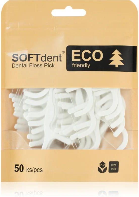 SOFTdent ECO Dental Floss Pick, 50 szt., Nici dentystyczne unisex, Nić dentystyczna SOFTdent ECO Dental Floss Pick jest ważnym uzupełnieniem higieny przestrzeni międzyzębowych. Pomaga w walce z bakteriami tam, gdzie nie dociera szczoteczka do zębów. Właściwości: usuwa osad nazębny pod linią dziąseł …