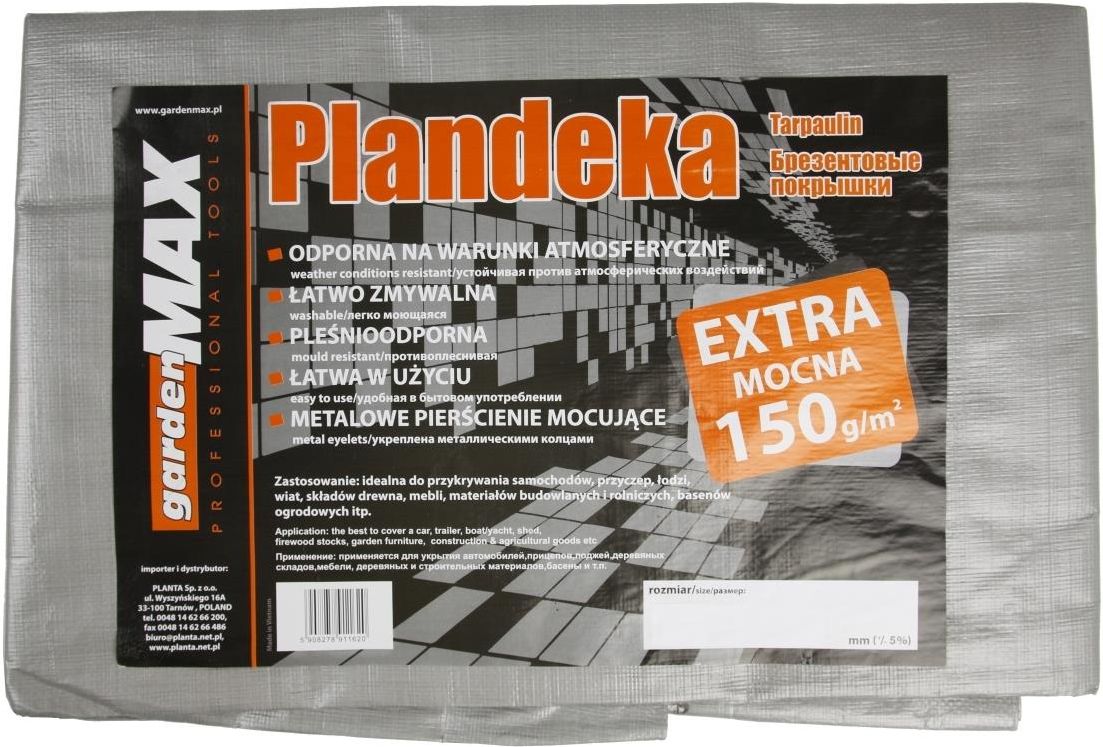 Wyjątkowo wytrzymała plandeka o niemal 3 razy większej gęstości niż standardowe rodzaje dostępne na rynku. Świetnie zabezpiecza przed wszystkimi szkodliwymi czynnikami zewnętrznymi. Cechy produktu: - gruba plandeka okryciowa, - idealna do ochrony przed deszczem, śniegiem, wiatrem i słońcem, - posiada metalowe oczka do mocowania, - oczka do mocowania umieszczone wzdłuż boków co 100 cm, - krawędzie wzmocnione polipropylenowym sznurem, - wytrzymała i wodoodporna, - posiada stabilizator UV, - niemal 3 razy grubsza od standardowych plandek, - pleśnioodporna, - łatwo zmywalna, Plandeki znakomicie sprawdzą się do przykrywania i ochrony: - budynków w stanie surowym, - materiałów budowlanych, - drewna, - samochodów i motocykli, - przyczep, - łodzi, - maszyn, - mebli, - basenów ogrodowych, - materiałów rolniczych i ogrodniczych, - wiat i stoisk, - idealnie sprawdzą się również jako dodatkowa izolacja pod namiot czy też basen. Wymiary produktu: - długość 8 m, - szerokość 12 m, - kolor: srebrny - tolerancja wymiarowa +/- 5%.