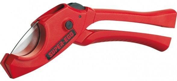Nożyce do rur z tworzyw sztucznych 32 mm SUPER EGO Numer katalogowy: 568400000 Kod EAN: 8414162031079 Nożyce do rur z tworzyw sztucznych Super Ego Plastic Cutter TC32 to najwyższa jakość. Ostrza zapewniają czyste i dokładne cięcie rur o średnicy do 32 mm i są przeznaczone do wszystkich obecnie używanych w instalacjach rur z tworzyw sztucznych. Ergonomiczna aluminiowa konstrukcja gwarantuje precyzyjne cięcie i długą żywotność. Zalety Do precyzyjnego cięcia rur z PP, PE, PEX, PVC, PB i PVDF do Ø 32 mm.- Precyzyjne przeniesienie siły, minimum wysiłku podczas cięcia. Precyzyjne cięcie pod kątem prostym dzięki szerokiemu podparciu rury. Wymienne ostrze. Automatycznie kontrolowane otwarcie ostrza po naciśnięciu przycisku. - Gumowana rękojeść gwarantująca pewny chwyt. - Blokada rękojeści do bezpiecznego transportu. Dane techniczne: [mm]: 0-32 Masa [g]: 250 Ilość [szt]: 1