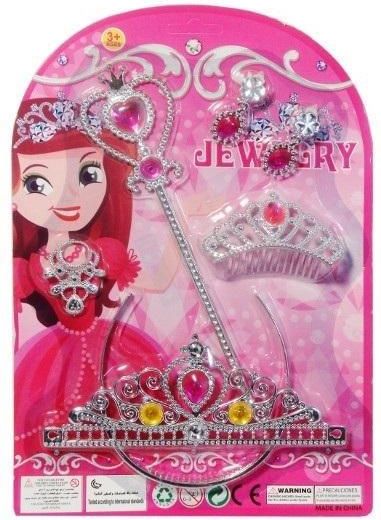 Zestaw dla małej księżniczki, tiara + biżuteria będzie stanowić idealne uzupełnienie stroju. W zestawie znajduje się tiara na opasce wraz z kolczykami, spinką i różdżką. Produkt zapakowany w kartonowe opakowanie z okienkiem. Zestaw przeznaczony dla dzieci od 3 lat. Podane wymiary stanowią wymiar opakowania. Klasa: 3+ Oprawa: blister Format: 290x200 mm