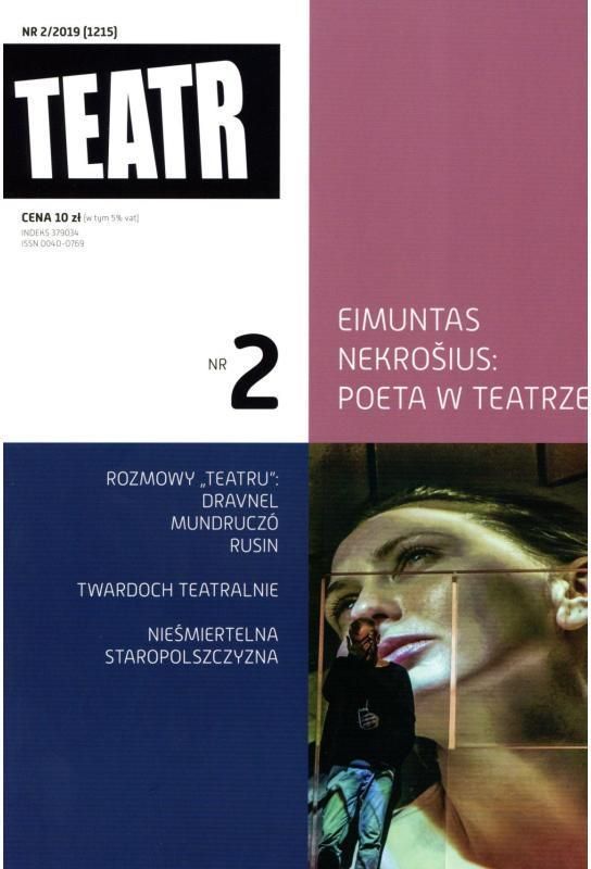 - TEMAT Z OKŁADKI - Eimuntas Nekrošius. Wspomnienie Artur Duda Taki jest bieg rzeczy Kamień, drewno, woda, ogień – z Rasą Rimickaitė rozmawia Monika Pilch Rodzinna manufaktura – z Mariusem Nekrošiusem rozmawia Karolina Matuszewska - WYDARZENIE - staropolszczyzna Paweł Dobrowolski Głos Wołającego TRAGEDIA JANA, CZYLI TRAGEDIA ALBO WIZERUNEK ŚMIERCI PRZEŚWIĘTEGO JANA CHRZCICIELA PRZESŁAŃCA BOŻEGO Teatr Chorea w Łodzi Katarzyna Flader-Rzeszowska Józef wywyższony ŻYWOT JÓZEFA Pracownia Staropolska Zejść do studni dziejów – z Jarosławem Gajewskim rozmawia Katarzyna Flader-Rzeszowska - LUDZIE Kornél Mundruczó Lepiej dawać, niż brać – z Kornélem Mundruczó rozmawia Jacek Kopciński Mateusz Rusin Usłyszeć siebie – z Mateuszem Rusinem rozmawia Szymon Kazimierczak Jan Dravnel Odkryć tożsamość – z Janem Dravnelem rozmawia Monika Pilch - PRZESTRZENIE TEATRU Szczepan Twardoch na scenie Dominik Gac W końcu nie ma nic Federico García Lorca Katarzyna Wojtysiak-Wawrzyniak Dramaturgia hiszpańskiej ziemi - PO PREMIERZE Karolina Felberg Pierwsza decyzja CZĄSTKI KOBIETY TR Warszawa Jolanta Kowalska Ej, przeleciał ptaszek GROTOWSKI NON-FICTION Teatr im. Jana Kochanowskiego w Opolu, Wrocławski Teatr Współczesny Agata Tomasiewicz Metoda Wdowik GNIEW Teatr Powszechny w Warszawie Jarosław Cymerman Raz kozie dancing STRYJEŃSKA. LET’S DANCE, ZOFIA! Centrum Spotkania Kultur w Lublinie Jacek Wakar Rebelia MIŁOŚĆ W LENINGRADZIE Teatr Miejski w Gliwicach - PRZEGLĄD „Z ogniem w głowie 3” Jolanta Kowalska Po nas choćby pożar Międzynarodowy Festiwal Teatralny „Demoludy” – Nowa Europa Łukasz Rudziński Ukraina, wojna i wolność Justyna Biernat Kłębi się wokół mnie niebo PAMIĘTNIK WARIATA Katona József Színház w Budapeszcie, Stowarzyszenie MASZK w Szegedzie Forum Młodej Reżyserii Jan Karow Syreny dochodzą do głosu - CZYTELNIA Maryla Zielińska Teatropisanie Elżbieta Konieczna JERZY JAROCKI. BIOGRAFIA Małgorzata Piekutowa Był teatr Elżbieta Morawiec TEATR STARY JAKI BYŁ 1945–2000 Marta Steiner Co jest do zamaskowania? OGRÓD SZTUK. MASKA FELIETONY / STAŁE RUBRYKI Jacek Kopciński - Forum Listy polecone Marek Kochan Artur Pałyga Natalia Worożbyt Rozmaitości