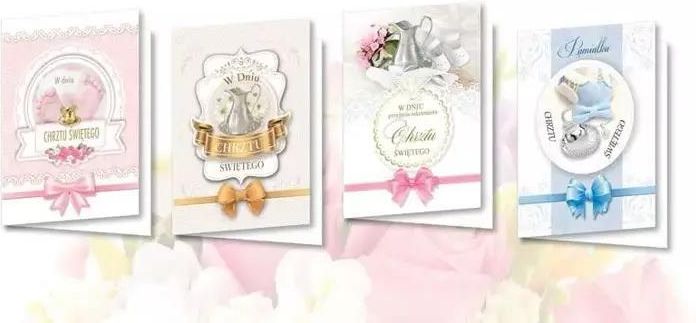 Karnet B6 z naklejkami hologr. Chrzest MIX (10szt) Top Graphic __________________________________________________________________ Karnet B6 z nalepkami zdobionymi folią holograficzną. Koperta.Pakowane do zaklejanej folii. Mix 10 sztuk w opakowaniu zbiorczym EAN: 5907786924191 Format: 136x206 mm …