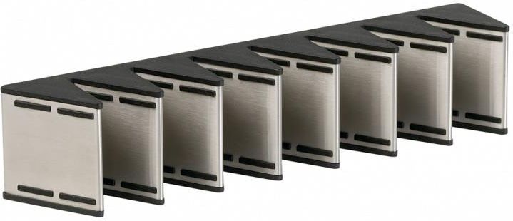 Magnes na noże MAGNETO jest estetyczny, wytrzymały i łatwy w instalacji. Silne magnesy dbają o to, aby noże trzymały się w miejscu. Miejsce na 8 noży. Producent zaleca przecieranie wilgotną ścierką. Kolor: szary. Wymiary: Długość: 27,5 cm. Wysokość: 5,1 cm. Szerokość: 6,2 cm. Materiał: stal nierdzewna, magnes, silikon. Produkt cenionej duńskiej marki Eva Solo.