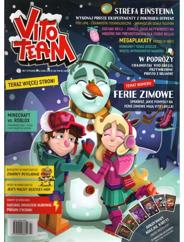 numer czasopisma prosto od VITO i BELLI! W numerze dużo ciekawych zagadek i łamigłówek. Obszerny temat okładkowy o tym jak zostać Youtuberem! Sprawdź jakie pomysły przygotowali dla Ciebie Vito i Bella! Ponadto w magazynie znajdziesz interesujące artykuły o Robloxie i Minecrafcie. Dodatkowo masz okazję wziąć udział w świetnym konkursie, gdzie do wygrania jest mnóstwo rzeczy od VITO TEAM!