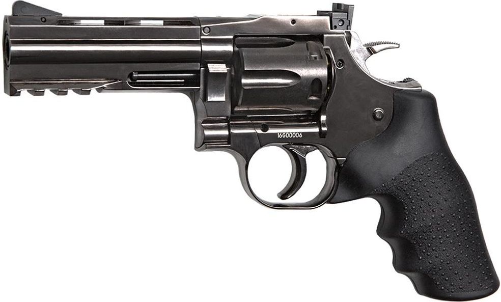 Ciężka, w pełni metalowa replika rewolweru Dan Wesson 715 napędzana gazem CO2 z 12g kartusza umieszczanego w rękojeści.