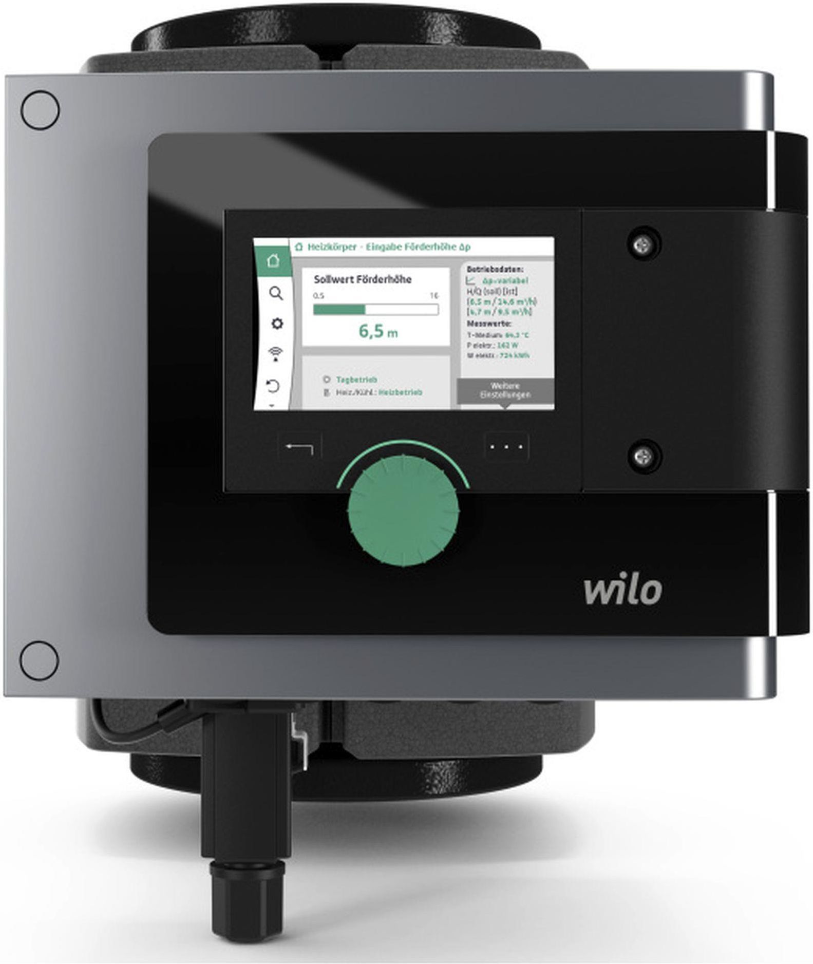 Pompa Smart Premium Wilo-Stratos MAXO-R7 (R7 = bez czujnika temperatury) Pompa bezdławnicowa Inline o najwyższej sprawności z silnikiem EC i elektronicznym dopasowaniem wydajności. Stosowanie dla wody ciepłej, zimnej oraz mieszanki wody i glikolu. Współczynnik sprawności energetycznej (EEI) w zależności od typu pompy ? 0,17 i ? 0,19. Rodzaje regulacji Stałe, automatyczne dostosowanie mocy do wymagań instalacji bez wprowadzania wartości zadanych Wilo-Dynamic Adapt plus (ustawienie fabryczne). Oszczędność zużycia energii do 20 % w porównaniu z trybem regulacji dp-v. Stała temperatura (T-const.) Stała temperatura różnicowa (dT-const.) Dostosowana do zapotrzebowania optymalizacja przepływu obrotowego pompy zasilającej poprzez połączenie i komunikację z kilkoma pompami (Multi-Flow Adaptation). Stały przepływ (Q-const.) Regulacja różnicy ciśnień dp-c w punkcie oddalonym w rurociągu (regulacja punktu błędnego) Stała różnica ciśnień (dp-c) Zmienna różnica ciśnień (dp-v) z opcją nominalnego wprowadzania punktu pracy Stała prędkość obrotowa (n-const.) Zdefiniowana przez użytkownika regulacja PID Funkcje Rejestracja ilości ciepła (możliwa z wyposażeniem dodatkowym w postaci czujnika temperatury przetłaczanego medium Wilo lub analogicznym, np. 2x PT1000) Rejestracja ilości zimna (możliwa z wyposażeniem dodatkowym w postaci czujnika temperatury przetłaczanego medium Wilo lub analogicznym, np. 2x PT1000) Automatyczne wyłączanie w przypadku rozpoznania w pompie przepływu zerowego (No-Flow Stop) Przełączanie pomiędzy trybem grzania i chłodzenia (automatycznie, zewnętrzne i manualnie) (automatycznie, możliwe z wyposażeniem dodatkowym w postaci czujnika temperatury przetłaczanego medium Wilo) Nastawne ograniczenie przepływu przez funkcję Q-Limit (Qmin. i Qmax.) Rodzaj pracy pomp podwójnych: Optymalizowana sprawnościowo praca z dołączaniem dla dp-c i dp-v, tryb pracy podstawowej / tryb pracy z rezerwą Zapisywanie i przywracania skonfigurowanych ustawień pompy (3 punkty przywrócenia ustawień) Sygnalizacja awarii / ostrzeżenia w formie tekstu wraz z pomocą Funkcja odpowietrzania do automatycznego odpowietrzania komory wirnika Automatyczna praca w trybie obniżenia nocnego (możliwa z wyposażeniem dodatkowym w postaci czujnika temperatury przetłaczanego medium Wilo) Automatyczna funkcje nieblokowania i wbudowane pełne zabezpieczenie silnika Wykrywanie pracy na sucho Wskazanie Rodzaj regulacji Wartość zadana Przepływ Temperatura (możliwa z wyposażeniem dodatkowym w postaci czujnika temperatury przetłaczanego medium Wilo) Pobór mocy Zużycie prądu Czynniki wywierające aktywny wpływ (np. STOP, No-Flow Stop) Wersja 2 konfigurowane wejścia analogowe: 0 – 10 V, 2 – 10 V, 0 – 20 mA, 4 – 20 mA i standardowe PT1000; zasilanie elektryczne z +24 V DC 2konfigurowalne wejścia cyfrowe (Ext. Off, Ext. Min, Ext. Max, ogrzewanie / chłodzenie, możliwość ręcznego przesterowania (automatyka budynku sparowana), blokada obsługi (blokada klawiszy i ochrona konfiguracji pilotów)) 2konfigurowane przekaźniki do sygnalizacji komunikatów pracy i sygnalizacji awarii Gniazdo modułów CIF Wilo z interfejsami do automatyki budynku (opcjonalne wyposażenie dodatkowe: moduły CIF Modbus RTU, Modbus TCP, BACnet MS/TP, BACnet IP, LON, , PLR,CANopen) Wilo Net jako system magistrali Wilo do komunikacja produktów Wilo między sobą np. Multi-Flow Adaptation; Pompa podwójna i Wilo-Smart Gateway Automatyczny tryb awaryjny w sytuacjach wyjątkowych (zdefiniowana prędkość obrotowa pompy) np. w przypadku gdy nastąpi wyłączenie komunikacji za pomocą magistrali lub wartości czujników Graficzny wyświetlacz kolorowy (4,3 cala) z obsługą poprzez moduł obsługi ręcznej za pomocą jednego przycisku Odczytywanie i ustawianie danych pracy oraz np. sporządzanie protokołu z uruchomienia za pośrednictwem interfejsu Bluetooth (bez innego wyposażenia dodatkowego) przy użyciu aplikacji Wilo-Assistant Zarządzanie pracą pomp podwójnych zintegrowane (pompy podwójne są okablowane), przy stosowaniu 2 pomp pojedynczych jako jednostki pompy podwójnej, połączenie Wilo Net Możliwość rozpoznania przerwania przewodów przypadku sygnału analogowego (w połączeniu z 2 – 10 V lub 4 – 20 mA) Ustawienie na zewnątrz z ochroną przed czynnikami klimatycznymi zgodnie z instrukcją montażu i obsługi Data i godzina ustawione seryjnie Pokrywy izolacji termicznej do zastosowania w instalacjach grzewczych Zakres dostawy Pompa Zoptymalizowany Wilo-Konektor do wszystkich wielkości 2x dławiki przewodu M16 x 1,5 2x uszczelki w przypadku przyłącza gwintowanego Pokrywy izolacji termicznej Instrukcja montażu i obsługi Opcjonalne wyposażenie dodatkowe Izolacja chłodnicza ClimaForm zapobiegająca powstawaniu kondensatu Moduł CIF: Modbus TCP, Modbus RTU, BACnet IP, BACnet MS/TP, LON, PLR, CANopen PT 1000 (B) czujniki orurowania (dla wody użytkowej) PT 1000 (AA) przetwornik do montażu w tulei zanurzeniowej Czujnik różnicy ciśnień Smart-Gateway Czujnik temperatury przetłaczanego medium Wilo (może być doposażony w celu rejestracji i wyświetlania temperatury przetłaczanej cieczy, pomiaru ilości ciepła i chłodzenia oraz wykorzystania trybów regulacji ze sterowaniem temperatury T-const., dT-const.)
