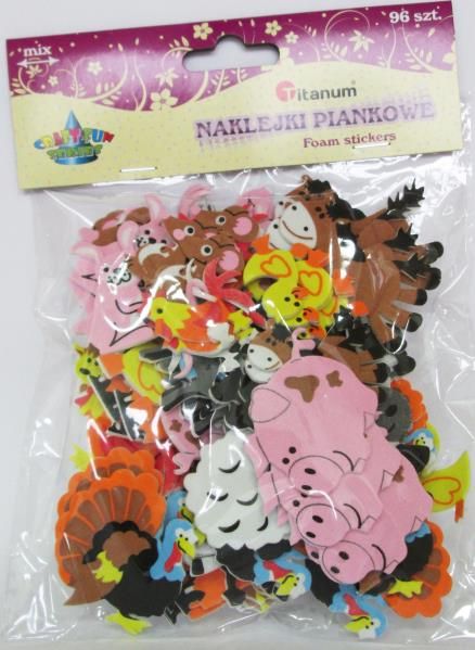Naklejki piankowe zwierzęta zagrodowe mix 11 wzorów 96szt.