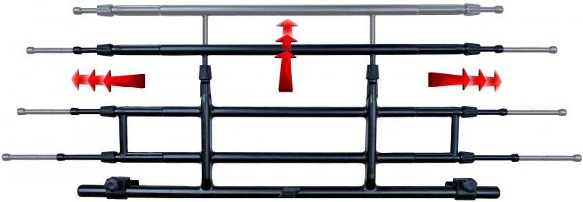Kratka Pratico zapewnia bezpieczne oddzielenie bagażnika od pasażerów. W pełni regulowana, pasuje do większości aut. Świetna przy podróżach z psem – stabilna, solidna i łatwa w montażu. Wymiary: długość 80–140 cm, wysokość 30–45 cm.