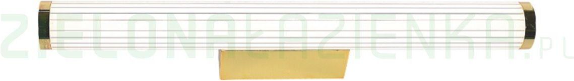 - Materiał: metal, akryl - Zasilanie: 230 V - Żarówki w zestawie: tak - Kolor: złoty - Stopień ochrony: IP44 - Wysokość: 11.5 cm - Szerokość: 61 cm - Moc żarówki: 12 W - Ilość punktów światła: 1