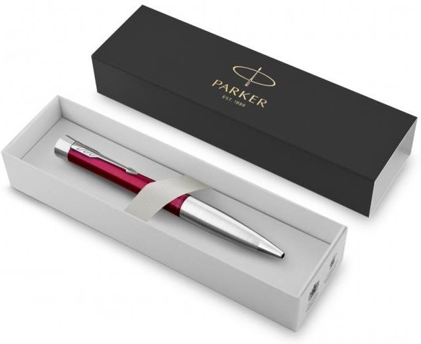 Efektowny i dynamiczny: długopis PARKER Urban z mechanizmem typu twist przyciąga spojrzenia ekspresyjnym i nowoczesnym wyglądem. Krągła forma oraz udoskonalona waga tego modelu zapewniają doskonale wyważone pisanie, uzupełniające Twój styl. Ten długopis PARKER charakteryzuje się błyszczącym, lakierowanym wykończeniem w kolorze żywego karmazynu z efektownymi chromowanymi akcentami. Końcówka długopisu, chowana ruchem skrętnym, oraz tusz QuinkFlow zapewniają gładkie pismo i niezawodność. Dzięki formie opartej o płynne, zakrzywione linie długopisy Urban z mechanizmem typu twist zwiększają pewność siebie z każdym napisanym słowem. Elegancka forma krągłej klepsydry nadaje temu przyborowi do pisania ekspresyjny i nowoczesny wygląd, dopasowany do Twojego stylu Wyrafinowany mechanizm typu twist oraz niezawodny tusz QuinkFlow zapewnia gładkie i płynne pismo w każdej sytuacji Ergonomiczny kształt i waga dopasowane są do Twojej dłoni, zapewniając idealny uchwyt i równowagę Błyszczący karmazynowy lakier z chromowanymi wykończeniami i korpusem, uzupełniony charakterystycznym klipsem w kształcie strzałki PARKER Doskonały model na uczelnię i do pracy