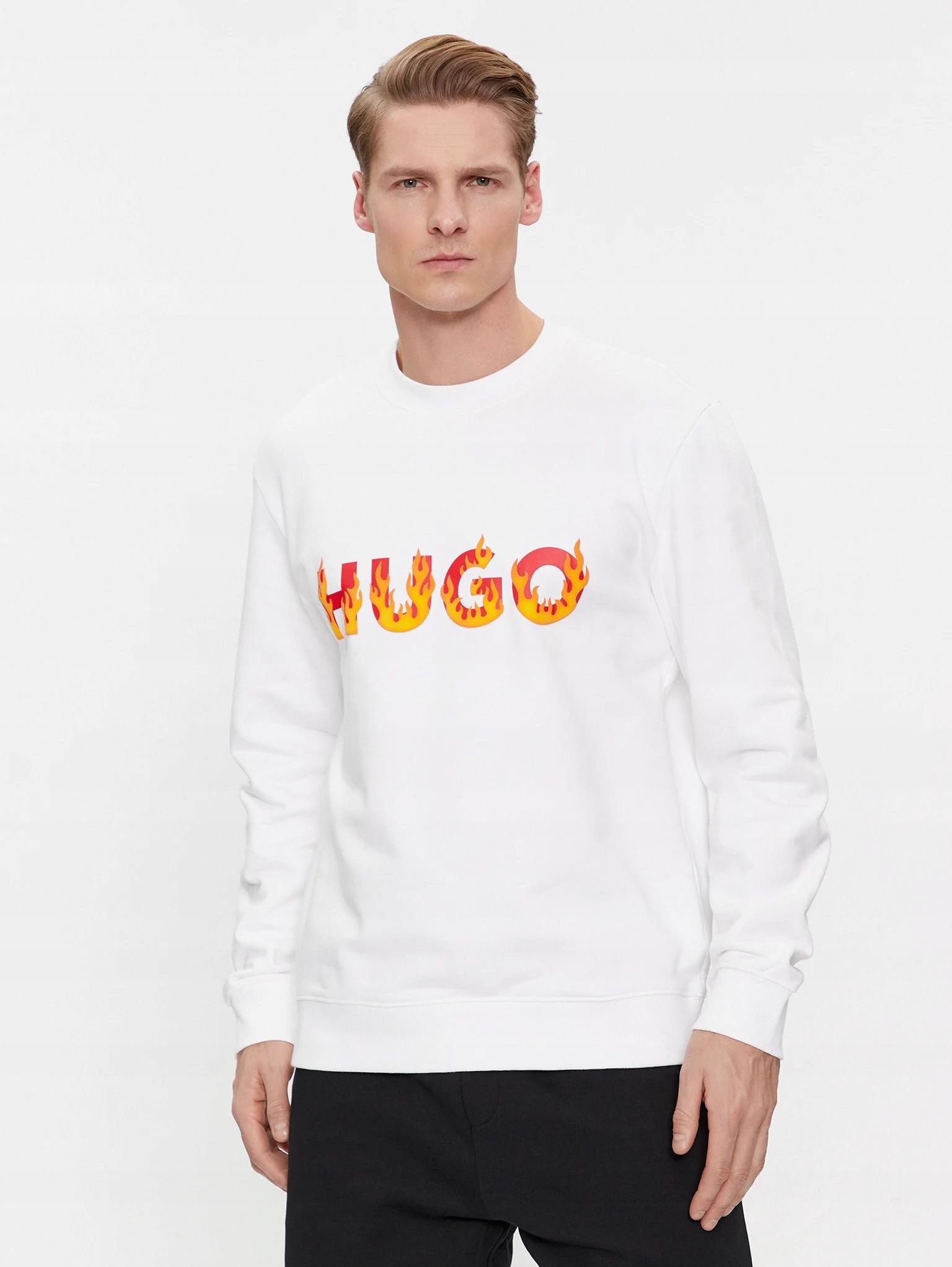 Sportowa bluza męska bez kaptura HUGO BOSS bawełniana dresowa biała r. M Ostrów Lubelski