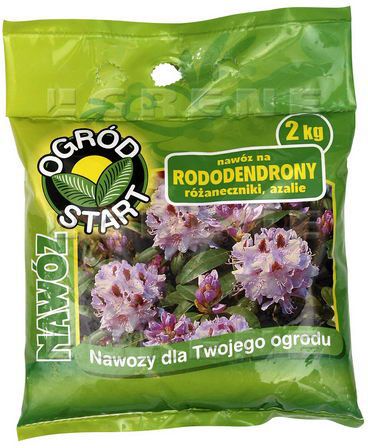 Ogród Start Nawóz na Rododendrony 2 kg Nawóz NPK z siarką do rododendronów, różaneczników i azalii dla ich dobrej kondycji, poprawy odporności i intensywnego wybarwienia Nawóz przeznaczony specjalnie dla rododendronów, różaneczników i azalii to niezastąpione wsparcie dla zdrowego wzrostu i bujnego kwitnienia tych krzewów ozdobnych. Jego kompleksowa formuła zawiera idealnie zbilansowane proporcje składników odżywczych, zapewniając dobrą kondycję roślin. Dzięki odpowiedniemu połączeniu azotu, fosforu, potasu i siarki nawóz ten stymuluje intensywne kwitnienie oraz wzmacnia odporność roślin na choroby grzybowe i niesprzyjające warunki atmosferyczne. Wpływa też na intensywne wybarwienie kwiatostanów oraz liści. Działanie zakwaszające nawozu sprzyja idealnym warunkom glebowym dla rododendronów, różaneczników i azalii, które preferują kwaśne podłoże. Regularne stosowanie nawozu Ogród Start przynosi znaczące rezultaty, zarówno dla roślin uprawianych w gruncie, jak i tych hodowanych w doniczkach. Skład: azot (N) – 12%, fosfor (P₂O₅) – 5%, potas (K₂O) – 10%, siarka (S) – 14%. Dawkowanie – jak stosować Ogród Start Nawóz na Rododendrony? Orientacyjne dawki nawozu: Przed sadzeniem stosować 30-40 g nawozu, po zastosowaniu wymieszać nawóz z ziemią z dołka, w którym planujemy posadzić roślinę. Pogłównie stosowaćw dwóch dawkach na początku kwietnia, w drugiej połowie czerwca. Młode rośliny do 1 m wysokości zalecane stosowanie – od 25 do 35 g/m2 w jednej dawce. Starsze rośliny zalecane stosowanie – od 35 do 45 g/m2 w jednej dawce. Po zastosowaniu nawozu należy podlać rośliny dla zwiększenia skuteczności nawożenia. Korzyści stosowania nawozu Ogród Start Nawóz na Rododendrony, Różaneczniki i Azalie Nawóz wpływa na bujne kwitnienie roślin, działa zakwaszająco, intensyfikuje wybarwienie kwiatostanówi liści, podkreślając naturalne piękno roślin, poprawia zdrowotność roślin dzięki zbilansowanym składnikom odżywczym, zwiększa odporność roślin na choroby grzybowe, suszę i przymrozki. Ogród Start Nawóz na Rododendrony – zalecenia stosowania Zalecany termin stosowania nawozu Ogród Start Nawóz na Rododendrony to okres od kwietnia do czerwca.