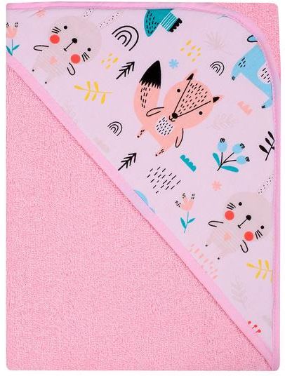 Duetbaby Okrycie Kąpielowe Z Kapturkiem 100X100Cm 2380 Niedźwiedź I Lis Różowy Ostrów Mazowiecka