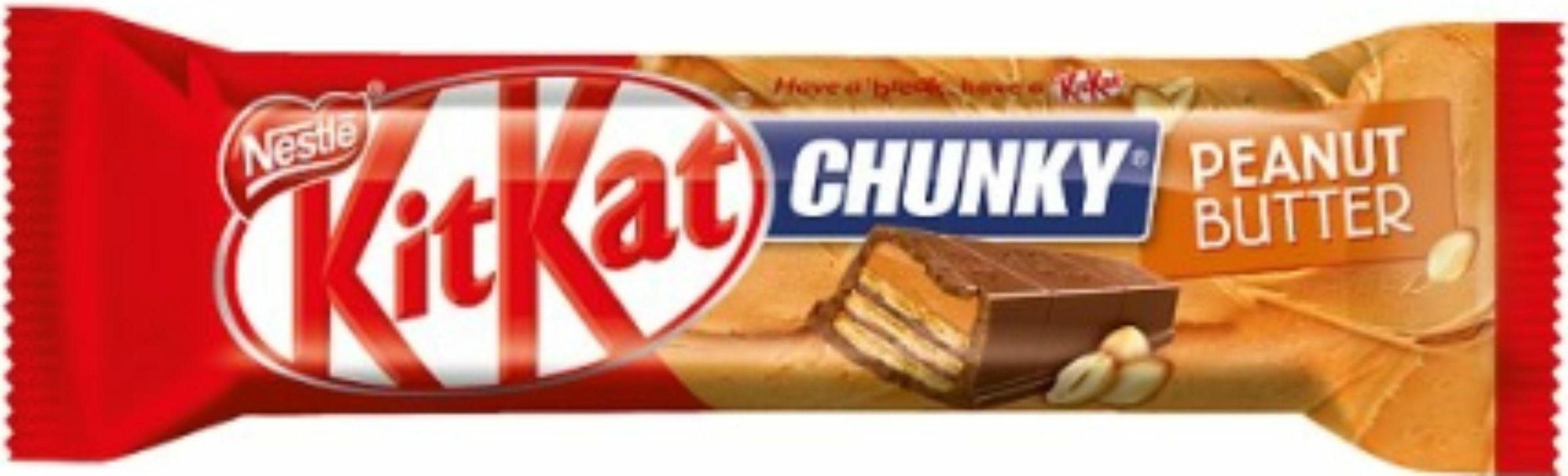 NESTLÉ Kit Kat Chunky Masło Orzechowe 42g Zrównoważony smak chrupiącego wafla, mlecznej czekolady, nadzienia kakaowego i kremu orzechowego. Wyprodukowane z kakao, ze zrównoważonych upraw, w ramach programu NESTLÉ COCOA PLAN. Składniki: Cukier suszony odtłuszczony mleko , masło kakaowe. Arachid …