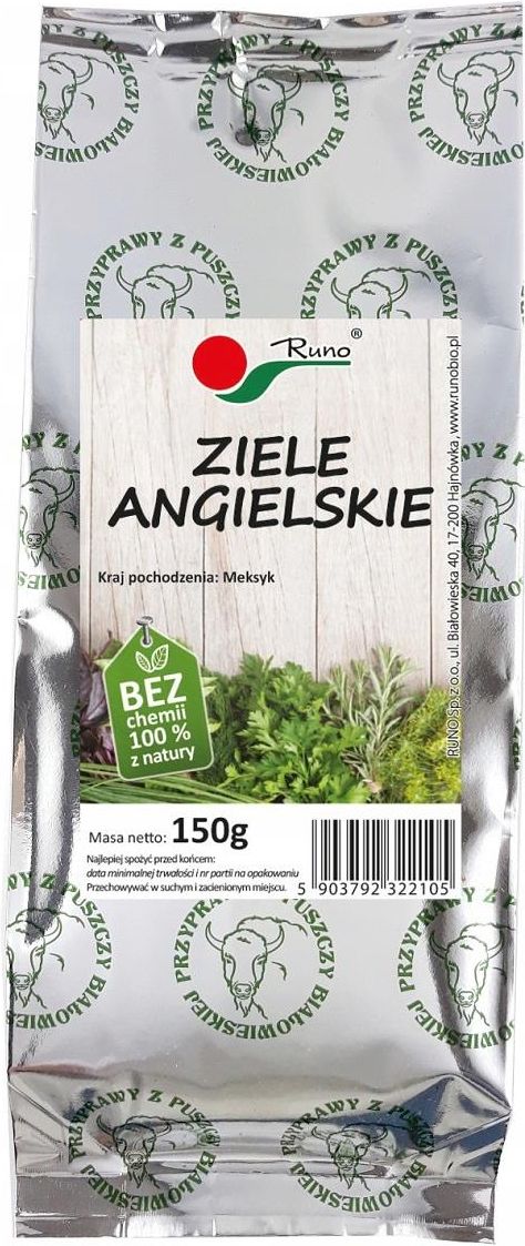 Runo Ziele Angielskie ziarno 150g Ziele angielskie, dostępne w opakowaniu 150 g, to jedna z najważniejszych przypraw w kuchni, obok soli i pieprzu, która potrafi nadać potrawom wyjątkowy smak i aromat. Często stosowane w tradycyjnych przepisach, te aromatyczne ziarna są cenione za swoją …