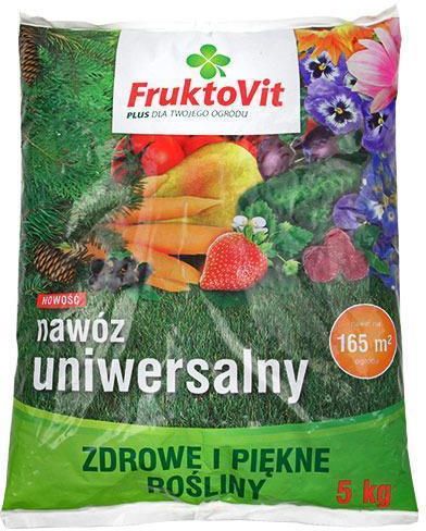 FruktoVit Plus Nawóz uniwersalny granulowany ogrodniczy 5kg ZDROWE ROŚLINY Zawiera odpowiednio dobrany zestaw składników pokarmowych, który cechuje się uniwersalnością. Stosowany do warzyw, drzew i krzewów ozdobnych oraz owocowych, kwiatów i trawników na wszystkich rodzajach gleb, zarówno dla …