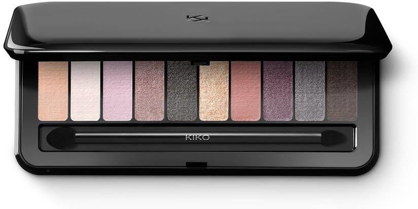 Paleta 10 cieni do powiek w eleganckich i wyrafinowanych odcieniach. Idealna do: podkreślania spojrzenia za pomocą nieskończonej liczby kombinacji nude lub smokey. Dlaczego jest wyjątkowa: – jedwabiste i superkomfortowe cienie do powiek cechują się średnio dużym kryciem oraz gładką i ultrapigmentowaną teksturą; – dzięki nieodpartej mieszance kolorów i wykończeń, od matowych po perłowe i metaliczne, pozwala uzyskać różnorodne odsłony eleganckiego i wyrafinowanego makijażu; – praktyczny podwójny aplikator i wbudowane lusterko sprawiają, że doskonale nadaje się do użycia również poza domem. Produkt testowany oftalmologicznie Rezultaty: Oko jest na pierwszym planie dzięki odcieniom nude z różnymi wykończeniami do wyboru, z którymi można eksperymentować, uzyskując coraz to nowy wygląd oczu. Sposób użycia: 1. Aby zmaksymalizować wydajność cieni, zacznij od nałożenia neutralnej bazy do powiek, takiej jak Neutral Eye Base od KIKO MILANO. 2. Nałóż cień na powieki pędzelkiem Eyes 51 i rozetrzyj delikatnie pędzelkiem Eyes 56. TALC, MICA, SYNTHETIC FLUORPHLOGOPITE, TRIETHYLHEXANOIN, ZEA MAYS STARCH (ZEA MAYS (CORN) STARCH), SILICA, TAPIOCA STARCH, C20-24 ALKYL DIMETHICONE, POLYGLYCERYL-2 TRIISOSTEARATE, ZINC STEARATE, MAGNESIUM MYRISTATE, PHENYL TRIMETHICONE, ETHYLHEXYLGLYCERIN, ISODODECANE, DEHYDROACETIC ACID, CALCIUM SODIUM BOROSILICATE, AQUA (WATER/EAU), POLYMETHYLSILSESQUIOXANE, MALTODEXTRIN, TIN OXIDE, STEARIC ACID, PALMITIC ACID, LAURIC ACID, CALCIUM ALUMINUM BOROSILICATE. +/- (MAY CONTAIN): CI 77891 (TITANIUM DIOXIDE), CI 77000 (ALUMINUM POWDER), CI 77499 - CI 77491 - CI 77492 (IRON OXIDES), CI 77742 (MANGANESE VIOLET), CI 77007 (ULTRAMARINES), CI 75470 (CARMINE), CI 42090 (BLUE 1), CI 77510 (FERRIC FERROCYANIDE).