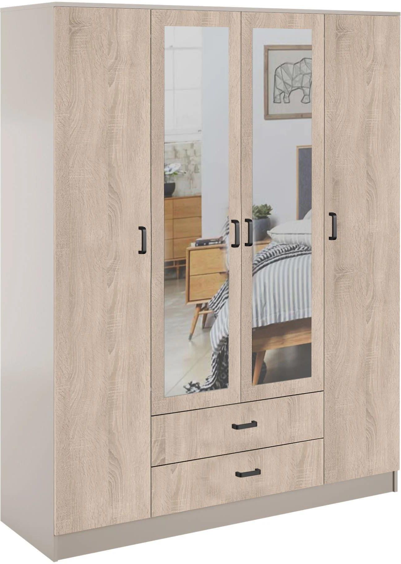 Mebel Bos Szafa Cento Ii 160X200 4D2S Kaszmir Dąb Sonoma Z Lustrem Ostrów Wielkopolski
