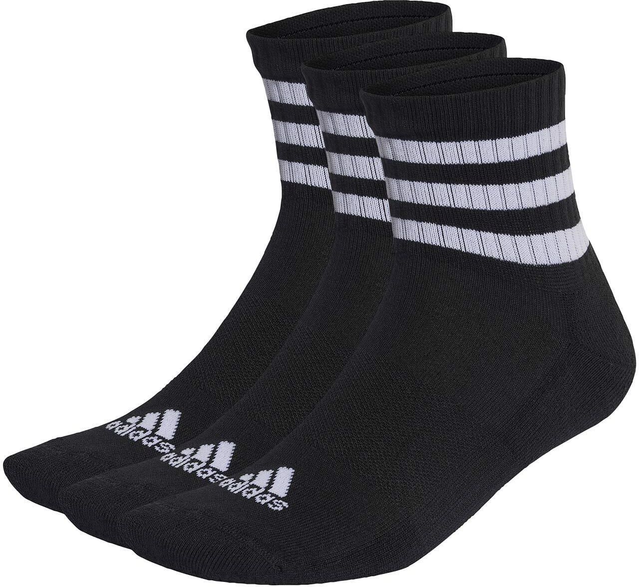 Skarpety adidas 3-Stripes Cushioned Sportswear Mid-Cut Socks 3 Pairs czarne IC1317 > Sportowe skarpety adidas oferują wysoki komfort noszenia. Miękka dzianina z wysoką zawartością bawełny pozwala swobodnie oddychać, a dodatek syntetycznych włókien poprawia wytrzymałość i elastyczność materiału. …