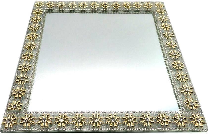 Kwadratowa duża podstawka pod świecę lub stroik ELIA Gold kwiaty z kryształami (12014) Kwadratowa duża podstawka pod świece ELIA GOLD marki MONDEX to świetne rozwiązanie do każdego pomieszczenia. Kwadratowa dekoracja ze zdobieniem na brzegu - kwiaty z kryształami, środek lustrzany. Podstawka …