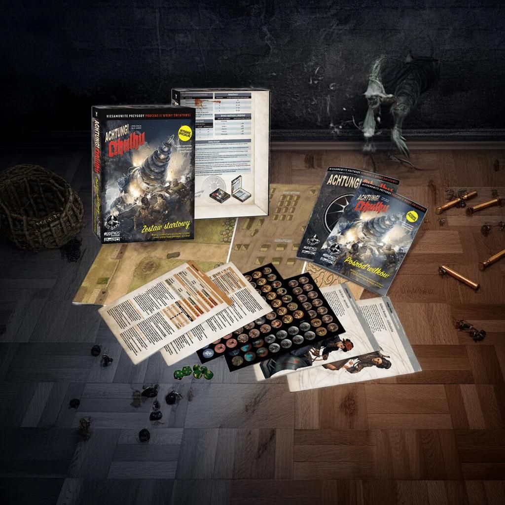 Recenzja Achtung! Cthulhu – Podręcznik Gracza - Gry fabularnejWydawca Alis Games Achtung! Cthulhu – Zestaw Startowy – Wejdź do świata tajnych operacji, pulpowej akcji i grozy rodem z mitów! Achtung! Cthulhu – Zestaw startowy to idealne wprowadzenie do jednego z najbardziej klimatycznych i ekscytujących systemów fabularnych łączących realia II wojny światowej z mrokiem mitologii Lovecrafta. Ten bogaty zestaw pozwala graczom na rozpoczęcie przygody w alternatywnej historii, gdzie alianci toczą sekretne wojny z nazistowskimi sektami, demonicznymi mocami i potworami z innego wymiaru. Tajemny front II wojny światowej W świecie Achtung! Cthulhu toczy się równoległy, niewidoczny dla zwykłych ludzi konflikt. Alianci stają naprzeciw złowrogim organizacjom Trzeciej Rzeszy – Zakonu Czarnego Słońca oraz Nachtwölfe. Pierwsi parają się mroczną magią, okultyzmem i przyzywają stwory z innego świata. Drudzy z kolei opierają się na technologii Atlantydów, szalonych wynalazkach i eksperymentach rodem z filmów science fiction. Gracze wcielają się w bohaterów frontu specjalnego: komandosów, tajnych agentów, żołnierzy wywiadu, członków ruchu oporu, a nawet cywilów wplątanych przypadkowo w sieć mistycznych intryg. Każda rozgrywka to intensywna mieszanka pulpowej przygody, thrillera szpiegowskiego i horroru mitologicznego. Co znajdziesz w zestawie startowym? Zestaw startowy Achtung! Cthulhu zawiera wszystko, co potrzebne do rozpoczęcia gry bez żadnego wcześniejszego przygotowania. Idealny zarówno dla nowych graczy, jak i dla Mistrzów Gry szukających gotowego materiału do poprowadzenia sesji. W środku znajdziesz: Zasady podstawowe – skrócony i przystępny podręcznik, który szybko wprowadzi Cię w realia gry i system 2d20 (opracowany przez Modiphius). "Pośród wilków" – pełnowymiarowa, 60-stronicowa przygoda, która rozpoczyna się na plażach Dunkierki, a kończy w tajemniczym podziemnym mieście. Doskonała jako pierwsza kampania wprowadzająca. 6 gotowych postaci – zróżnicowanych bohaterów gotowych do gry, z kartami postaci i tłem fabularnym. 6 dużych, klimatycznych map – do wykorzystania podczas scen akcji, eksploracji i konfrontacji z siłami zła. Ponad 100 żetonów – reprezentujących przeciwników, efekty, przedmioty i inne elementy rozgrywki. Zestaw kości do systemu 2d20 – z dedykowanymi kośćmi, które ułatwią i ubarwią rozgrywkę. Czego możesz się spodziewać? Klimatu rodem z filmów i seriali – Achtung! Cthulhu to pulpa pełną gębą: akcja, dynamika, zaskakujące zwroty akcji i bohaterowie, którzy nie cofną się przed niczym. Lovecraftowskiego horroru – potwory z mitologii Cthulhu, zakazane księgi, rytuały, które kończą się katastrofą i wiedza, która może doprowadzić do szaleństwa. Alternatywnej historii – w której Hitler ma więcej niż tylko armię, a za jego sukcesami mogą stać nieludzkie siły z innego świata. Rozgrywki dla każdego – system sprawdza się zarówno w dynamicznych jednostrzałach, jak i w dłuższych kampaniach. Zestaw startowy pozwala rozpocząć od razu i eksplorować uniwersum bez konieczności posiadania dodatkowych podręczników. Dla kogo jest Achtung! Cthulhu? Dla fanów historii alternatywnej i tajnych operacji. Dla miłośników klimatów pulp, horroru i science fiction. Dla każdego, kto chce rozpocząć swoją przygodę z RPG w klimacie grozy i akcji. Dla graczy szukających gotowego, kompletnego zestawu startowego z fabułą, bohaterami i narzędziami do prowadzenia sesji. Achtung! Cthulhu – Zestaw Startowy to doskonała propozycja dla każdego fana gier fabularnych, który szuka intensywnych przygód, epickich tajemnic i zmagań z niewyobrażalnym złem. Wejdź do świata, gdzie każda sesja to wyścig z czasem i rzeczywistością – i przekonaj się, czy masz dość odwagi, by stawić czoła Cthulhu… w mundurze. Producent: Alis Alicja Staszewska Gustawa Morcinka 48a 43-200 Pszczyna email: m.misztal@alis.games
