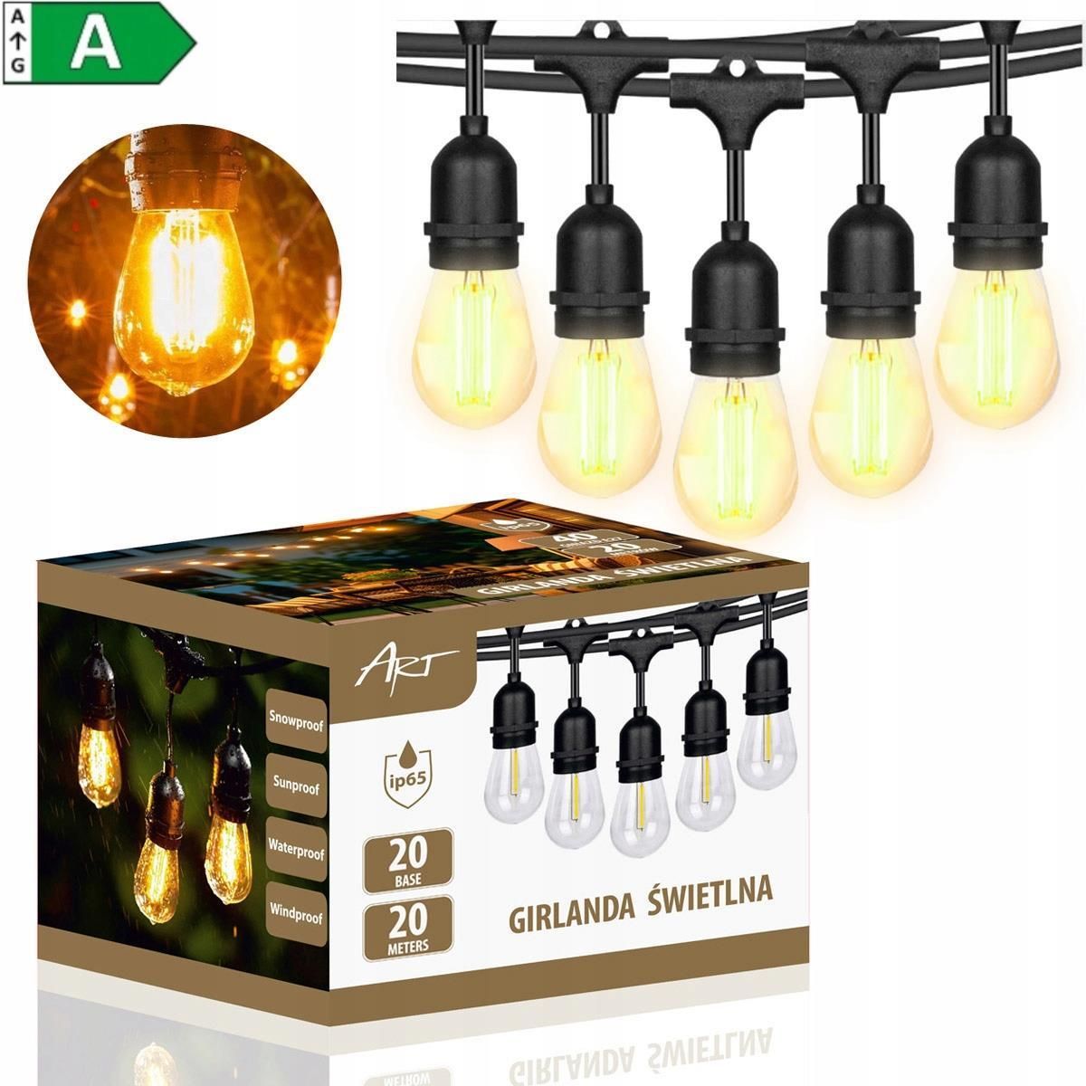 Wodoszczelne Lampki Ogrodowe Girlanda Łańcuch LED 20xE27 IP65 2700K 20M ART L5702020 ART Dodaj magii każdej przestrzeni dzięki kompletnemu zestawowi girlandy ogrodowej ART! Zestaw zawiera 20-metrową girlandę ogrodową z dedykowanymi żarówkami LED, które zapewnią niepowtarzalne oświetlenie w Twoim …