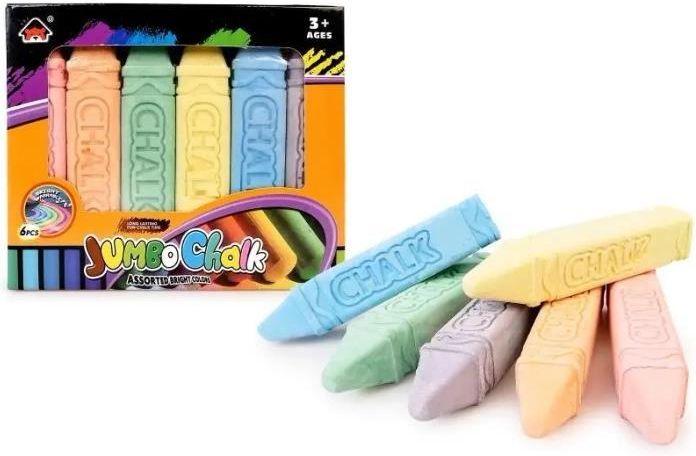 W zestawie: kredy chodnikowe w 6 kolorach, długość 10,5 cm, średnica 2,5 cm, wym. opakowania: 13 x 10,5 x 2 cm, 3+ EAN: 5901811137631