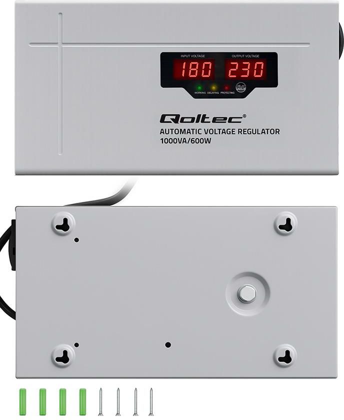 Specyfikacja: Producent: Qoltec Moc: 1000VA/600W Stopień ochrony: IP20 Częstotliwość: 50 - 60 Hz Częstotliwość wyjściowa: Zsynchronizowana z częstotliwością wejściową ( 50~60 Hz ) Napięcie wyjściowe: 220 - 240V Współczynnik mocy: 0.6 Transformator: Toroidalny Typ: Jednofazowy Dokładność wyjścia: ± 10% Sprawność: powyżej 95% Ekran LCD Złącza: Wejścia/Wyjścia Chłodzenie: Pasywne Głośność: poniżej 60dB Wybierany czas opóźnienia: 6 sekund/180 sekund Zakres napięcia wejściowego (AC): 125-270V Wymagane zabezpieczenie (bezpiecznik): 50A Wilgotność względna przechowywania: Max 95 % bez kondensacji Temperatura przechowywania: -20˚C ~ +40˚C Temperatura pracy: -10˚C ~ +40˚C Długość kabla: 1.10m Waga: 2.98kg Wymiary: 170x300x60mm Kolor obudowy: Szary Gwarancja: 24 miesiące Kod produktu: 29582 Zabezpiecz swoje urządzenia - Poznaj zalety automatycznego stabilizatora napięcia Qoltec Zadbaj o stabilne i bezpieczne zasilanie swoich urządzeń domowych i biurowych oraz o pełną ochronę sprzętu elektronicznego przed skutkami przepięć, przeciążeń i zwarć. Automatyczny stabilizator napięcia Qoltec AVR 1000VA / 600W to niezawodne rozwiązanie, które chroni sprzęt przed skutkami wahań napięcia, przeciążeniem i zwarciem. Dzięki precyzyjnej regulacji napięcia wejściowego urządzenie zapewnia optymalne warunki pracy dla komputerów, telewizorów, sprzętu audio, lodówek, pomp i wielu innych urządzeń elektrycznych. Pełna ochrona dla twoich urządzeń Stabilne napięcie 230V bez względu na wahania, specjalistyczna ochrona przeciwzwarciowa, Toroidalny transformator Wybierając rozwiązanie firmy Qoltec otrzymujecie: Stabilizacja napięcia w zakresie 125–270V AC, idealna do zastosowań domowych i biurowych Automatyczne zwiększanie lub zmniejszanie napięcia, aby utrzymać stabilne 220–240V AC na wyjściu Moc znamionowa 600W (1000VA) – odpowiednia dla większości urządzeń elektronicznych Transformator toroidalny - okrągły rdzeń minimalizuje straty energii oraz emisję ciepła, dzięki czemu stabilizator działa wydajnie i niezawodnie nawet przy dużych obciążeniach, Funkcja opóźnionego startu (6s / 180s) – chroni kompresory i silniki przed uszkodzeniem przy częstych włączeniach Wielostopniowa ochrona: przed zbyt wysokim i niskim napięciem, przeciążeniem, przegrzaniem i zwarciem Wysoka wydajność 95% i niskie zniekształcenia napięcia ( Cichy tryb pracy – poziom hałasu poniżej 65 dB Podwójny wyświetlacz cyfrowy LED – pokazuje jednocześnie napięcie wejściowe i wyjściowe Przystosowany do montażu na ścianie, kompaktowa i solidna konstrukcja Transformator toroidalny – serce urządzenia Stabilizator został wyposażony w wydajny transformator toroidalny, który odpowiada za efektywne i ciche działanie urządzenia. Jego okrągły rdzeń minimalizuje straty energii oraz emisję ciepła, dzięki czemu sprzęt działa stabilnie i bez zakłóceń nawet przy dużych obciążeniach. Zalety transformatora toroidalnego: wysoka sprawność energetyczna, niskie straty mocy, cicha praca, odporność na przegrzewanie. Inteligentne opóźnienie startu – ochrona Twoich urządzeń Stabilizator został wyposażony w funkcję opóźnionego startu. Domyślny czas opóźnienia wynosi 6 sekund. Funkcja ta jest przydatna w przypadku produktów z silnikami i sprężarkami, aby zapobiec i uchronić urządzenie przed uszkodzeniem z powodu częstego włączania urządzenia zaraz po jego wyłączeniu. Domyślny czas opóźnienia wynosi 6 sekund, jednak w razie potrzeby można go wydłużyć nawet do 180 sekund. Pełna kontrola dzięki wygodnemu wyświetlaczowi LED Stabilizator został wyposażony w wygodny podwójny wyświetlacz LED, który umożliwia łatwe monitorowanie i odczytywanie kluczowych parametrów pracy urządzenia. Zapewnia czytelną prezentację danych, takich jak aktualne napięcie wyjściowe, informacje o ewentualnych przepięciach, czas opóźnienia (jeśli jest aktywny), czy też inne istotne parametry pracy. To nie tylko ułatwia monitorowanie pracy urządzenia, ale także zapewnia użytkownikowi pewność, że wszystko działa prawidłowo i zgodnie z oczekiwaniami. Mobilność i niezawodność w każdym miejscu Dzięki kompaktowemu designowi i solidnej metalowej konstrukcji, stabilizator staje się idealnym towarzyszem podróży i wygodnym rozwiązaniem w każdym miejscu. Niezależnie od tego, czy jesteś w domu, w biurze, czy w podróży, możesz łatwo zabierać ze sobą urządzenie, zapewniając sobie stabilne napięcie wszędzie tam, gdzie jest to potrzebne. Zalety metalowej obudowy: wysoka odporność na uderzenia i zarysowania, skuteczna ochrona komponentów wewnętrznych, lepsze odprowadzanie ciepła, estetyczny, profesjonalny wygląd, zwiększona trwałość całej konstrukcji. Wszystko w zestawie – kołki i śruby montażowe w komplecie Stabilizator Qoltec został zaprojektowany z myślą o łatwym i bezpiecznym montażu na ścianie. Na tylnej ściance obudowy znajdują się specjalne otwory montażowe w układzie klucza, które umożliwiają szybkie zawieszenie urządzenia. W zestawie znajdują się kołki i śruby montażowe, dzięki czemu instalacja jest prosta, stabilna i nie wymaga dodatkowych akcesoriów. W zestawie Automatyczny stabilizator napięcia Qoltec AVR 1000VA 3% Instrukcja obsługi Karta gwarancyjna
