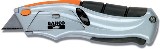 Nóż uniwersalny z wysuwanym ostrzem, BAHCO [SQZ150003] : uniwersalny nóż z wysuwanym ostrzem trapezowym i magazynkiem na 6 ostrzy, ma gumowe podpórki pod kciuk i ogumowaną dolną części chwytową zapobiegającą się ślizganiu dłoni na rękojeści, wysuwane ostrze trapezowe zapewnia większe bezpieczeństwo w porównaniu do noża ze stałą klingą (ostrzem), posiada łatwy sposób wysuwania noża za pomocą jednego dużego przycisku, magazynek na ostrza zapasowe, chroni i zabezpiecza ostrza przed czynnikami atmosferycznymi, ma bardzo ergonomiczną rękojeść, która w porównaniu z tradycyjnymi nożami jest zdecydowanie bardziej wygodna, a przy długotrwałej pracy ręka jest mniej zmęczona, nóż uniwersalny posiada bardzo łatwą wymianę ostrza za pomocą prostego naciśnięcia przycisku, Nóż uniwersalny znajdzie zastosowanie w pracach budowlanych, dekoratorskich, remontowych, modelarskich, warsztatowych, itp. Parametry noża uniwersalnego BAHCO [SQZ150003]: typ ostrza: trapezowy, ostrza zapasowe: 6 szt., długość całkowita noża L: 170 mm, wymiar A: 60 mm, waga: 320 g.