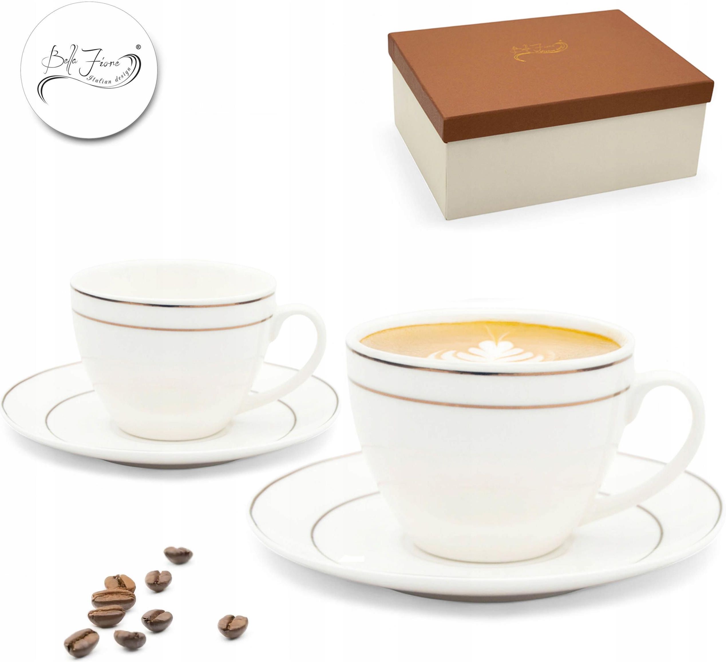 Bella Fiore Komplet Filiżanek 2+2 Serwis Do Kawy Filiżanka 230ml Spodek Zestaw (BF001) Oświęcim