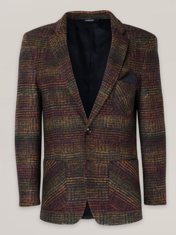 Marynarka męska w brązowy, zielony, pomarańczowy i bordowy przeplot Marynarki uszyte z domieszką wiskozy w odcieniach zieleni, brązu i bordo ,pasują na typowe casualowe wyjścia, a dzięki ich fakturze można je zestawiać z mocnymi kolorami i deseniami koszul. Dodatkowe informacje Marynarka w brązowy, …