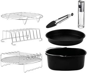 Cecotec Air Fryer akcesoria do frytkownicy 8 szt Zestaw akcesoriów Cecotec do frytownic bezolejowych od 5 do 6,5 l Stan: Nowy Opakowanie: Oryginalne, otwarte Pakiet akcesoriów Cecofry 8 akcesoriów powłoka zapobiegająca przywieraniu, można myć w zmywarce, nie zawiera BPA 8 akcesoriów do gotowania na frytownicach o pojemnościach od 5 do 6,5 litra; możliwość wykonania dużej ilości przepisów Parametry Produktu _________________________________________ Marka: ‎Cecotec Model: ‎04995 Kolor: ‎Czarny Wymiary produktu: ‎20 x 20 x 7 cm; 860 gr Pojemność: ‎6,5 Litry Waga przedmiotu: ‎860 g ASIN: B0BQ1CRQ3L