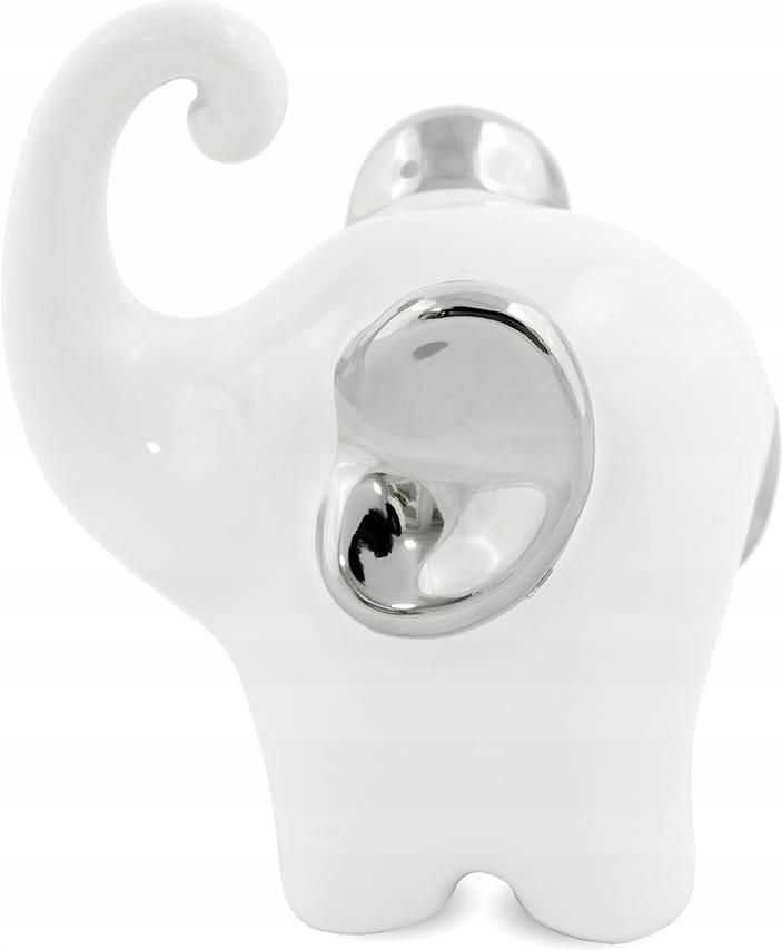 Słoń z trąbą do góry symbol szczęścia. Elegancka figura przedstawiająca słonia. Wykonana z wysokiej jakości ceramiki w kolorze biało-srebrnym. Dodatkowy atut to symbolika figury – słoń – odwieczny symbol szczęścia ! Polecamy na prezent urodzinowy, prezent na nowe mieszkanie, prezent dla ukochanej. …