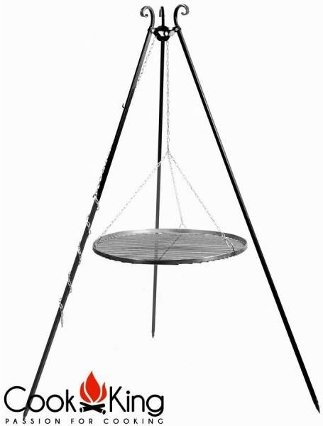 Grill ogrodowy posiada malowany proszkowo trójnóg, który jest bardzo odporny na różnego rodzaju uszkodzenia oraz warunki atmosferyczne. Wysokość rusztu grilla można łatwo regulować za pomocą kołowrotka zamieszczonego na górze trójnogu. Średnica rusztu wynosi aż 80 cm, więc jednorazowo można przygotować na tym grillu jedzenie dla dużej grupy osób. Grill ogrodowy na trójnogu, to idealne rozwiązanie dla wszystkich amatorów biesiadowania na świeżym powietrzu. Grill ten można rozstawić w każdym miejscu, nawet na nierównej powierzchni. Dzięki eleganckiemu wykończeniu i starannemu dobraniu materiałów grill sprawia wrażenie bardzo dobrego wyrobu. Oryginalny i niepowtarzalny wygląd będzie cieszył Państwa oko przez cały czas, a grillowane potrawy będą cieszyły podniebienia niejednego gościa. Duża bo aż 80cm średnicy misa paleniska ogrodowego pozwoli na rozpalenie bardzo dużego ogniska. Praktyczny, wklęsły kształt misy paleniska sprawia, że palone w nim drewno nie rozprzestrzenia się nawet podczas silnego wiatru. Palenisko można wykorzystać na wiele sposobów. Łącząc je z grillem ogniskowym na trójnogu, lub kociołkiem węgierskim. Samo palenisko będzie praktycznym miejscem na palenie ognia, przenośnym grillem, źródłem ciepła, a także stylowym sposobem na oświetlenie.