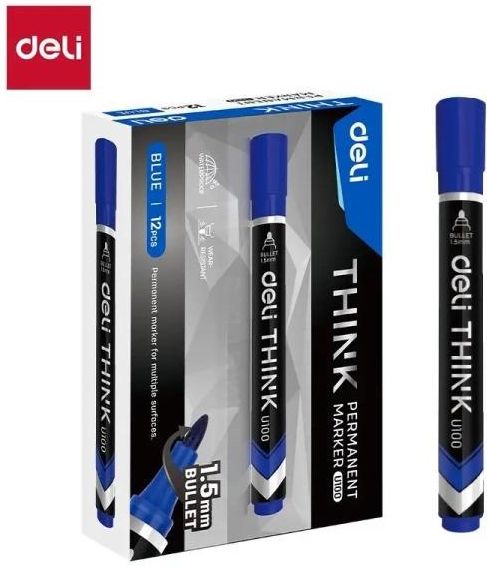 DELI Marker permanentny okrągły 1,5mm niebieski opakowania zbiorcze zawiera 12szt EAN: 6921734941695