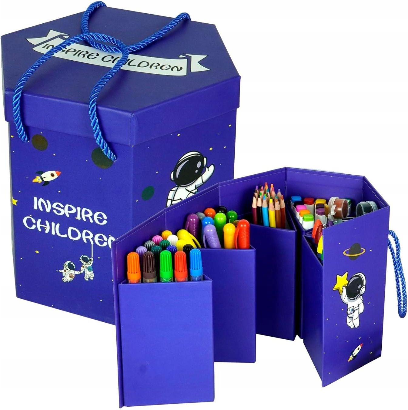 PREZENTUJEMY ABSOLUTNY HIT PIĘKNY PREZENTOWY ZESTAW KREDEK/PISAKÓW/FLAMASTRÓW/FARB DLA CHŁOPCÓW W PUDEŁKU ROZKŁADANYM - ORGANIZERZE Piękny i jedyny w swoim rodzaju zestaw artystyczny składający się ze 114 elementów to idealny prezent na każdą okazję. Wspaniały ogromny zestaw 114 elementów Niepowtarzalne pudełko prezentowe - organizer na wszystkie akcesoria, oprócz pudełka organizera całość zapakowana jest w kolorowe pudełko zewnętrzne! Pudełko Pełne Kolorów: Wyobraź sobie pudełko, które po otwarciu zaskoczy się kolorami tęczy. Dzięki nim namalujesz cokolwiek zechcesz! Ogranicza nas jedynie wyobraźnia. W naszej ofercie są kolory niebieskie z grafiką kosmosu dla chłopców, oraz różowe z jednorożcami i zamkiem księżniczki dla dziewczynek! - NA TEJ AUKCJI KUPUJESZ WZÓR NIEBIESKI WYJĄTKOWY ZESTAW ARTYSTYCZNY Zestaw artystyczny dla dzieci to najlepszy sposób na rozwijanie kreatywności i zdolności artystycznych Twojej pociechy. Złożony z aż 114 elementów, w których skład wchodzą między innymi: kredki, farby, pędzle, czy pisaki, pozwoli na tworzenie przepięknych i kreatywnych prac plastycznych. Wszystkie elementy zaprojektowane zostały z myślą o dzieciach, oznacza to, że ich rozmiary zostały dostosowane do wielkości dziecięcych dłoni. Przepiękny, kolorowy organizer składa się w poręczne pudełko z astronautą ułatwiającą transport i przechowywanie akcesoriów. PUDEŁKO ORGANIZER Nasze wyjątkowe usztywniane pudełko składa się z 6 przegródek w których znajdują się różne akcesoria do malowania i rysowania. Można je stawiać w pionie i poziomie dla wygody. Dzięki naszemu zestawowi pokój dziecka zmieni się nie do poznania i nabierze kolorów tęczy! IDEALNY ZESTAW PREZENTOWY Bez względu na to, czy potrzebujesz kredek do pisania, czy po prostu lubisz spędzać czas na malowaniu, nasz komplet na pewno spełni najwybredniejsze wymagania. Dzięki swojej wysokiej jakości i ładnie prezentującemu się organizerowi ten zestaw stanowi idealny materiał na prezent. Twórz wyjątkowe dzieła sztuki dzięki naszemu zestawowi artystycznemu! ZESTAW DLA CHŁOPCÓW I DZIEWCZYNEK W naszej ofercie są kolory niebieskie z grafiką kosmosu dla chłopców, oraz różowe z jednorożcami i zamkiem księżniczki dla dziewczynek! - NA TEJ AUKCJI KUPUJESZ WZÓR NIEBIESKI