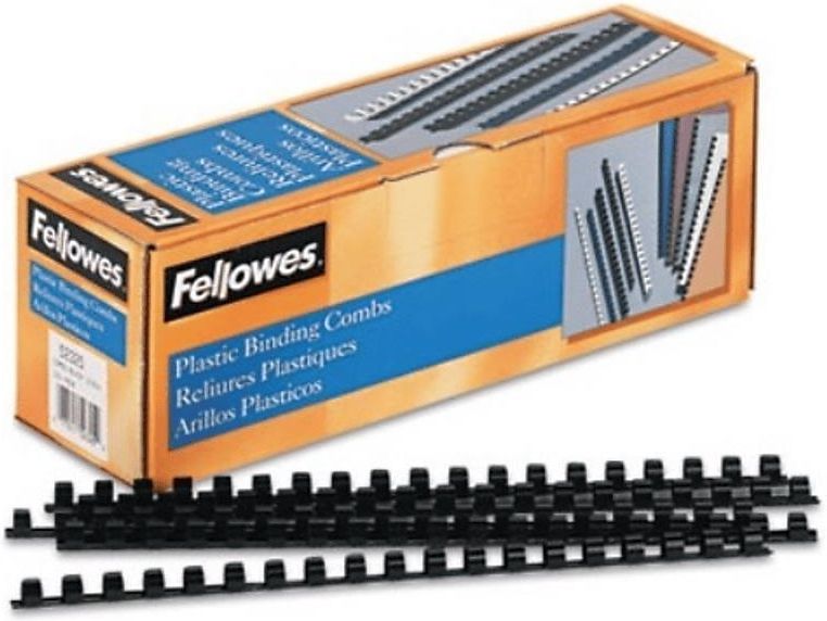 Grzbiet plastikowy do bindowania Fellowes A4 14mm Czarny 100szt. Grzbiety do bindowania marki Fellowes oferują prosty i praktyczny sposób oprawiania dokumentów, zapewniając im ochronę i profesjonalny wygląd. Dzięki tym grzbietom można łatwo i szybko dodawać lub usuwać kartki z dokumentu. Umożliwiają one oprawę dokumentów o grubości do 81-100 arkuszy w formacie A4 o gramaturze 80g/m². Opakowanie zawiera 100 sztuk okrągłych grzbietów o średnicy 14 mm w kolorze czarnym. Długość grzbietu wynosi 30 cm.