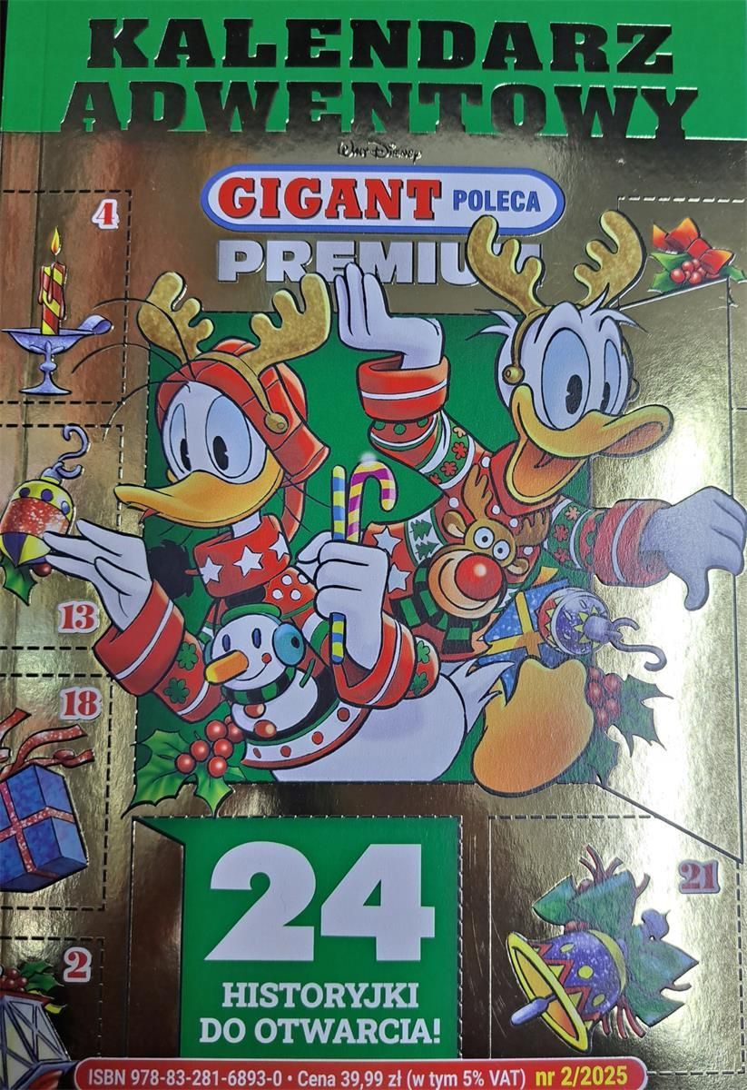 Poczujcie magię świąt we wspólnym odliczaniu do Gwiazdki! Ten wyjątkowy tom w postaci kalendarza adwentowego posiada 24 historyjki do otwarcia - po 1 na każdy dzień grudnia. Wspaniały prezent dla każdego fana Kaczogrodu i Myszogrodu, od 6 do 100 lat, nie tylko na Mikołajki czy pod Choinkę! EAN: …