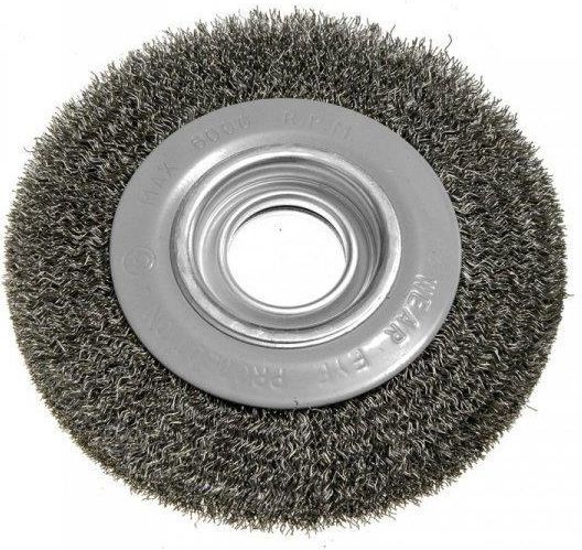 Szczotka druciana tarczowa 150 x 32 mm, drut karbowany, stalowy 57T435 marki GRAPHITE wykonana została z karbowanego drutu stalowego. Jej maksymalna prędkość obrotowa wynosi 6000 obr./min. Produkt spełnia wymagania normy EN 1083-2. W zestawie znajdują się redukcje: 2 x 12,2 mm (1/2"), 2 x 15,7 mm (5/8"), 2 x 19 mm (3/4"), 2 x 22,2 mm (7/8") oraz 2 x 25,3 mm (1"). Mocowanie przystosowane jest do współpracy ze szlifierkami stołowymi. Szczotka druciana GRAPHITE to uniwersalny produkt przeznaczony do wielu zadań....