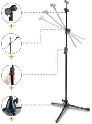 Składany statyw mikrofonowy Dane techniczne: - Wysokość: 1070 mm - 2400 mm - Waga: 2,6 kg (5,7 lbs) - Promień podstawy: 340 mm - Długość ramienia: 780 mm - Wymiar po złożeniu: 980 mm x 95 mm x 95 mm