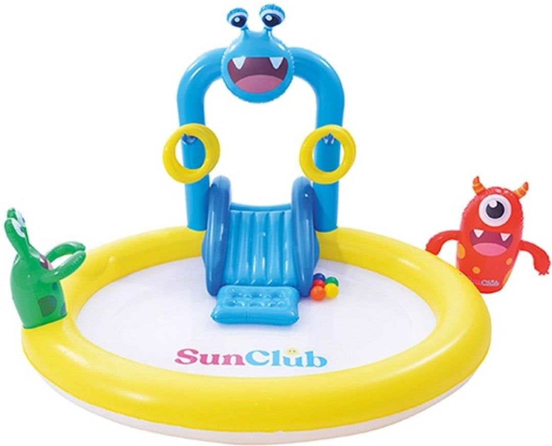 BASEN DZIECIĘCY PLAC ZABAW MONSTER 178x171x121CM 51141 Szukasz sposobu na ochłodę i świetną zabawę dla dzieci w upalne dni ?Dmuchany basen dziecięcy plac zabaw MONSTER 178x171x121 cm (model 51141) to idealne rozwiązanie na lato! Ten kolorowy, bajkowy zestaw zapewni Twojemu dziecku mnóstwo radości i aktywności na świeżym powietrzu. Wystarczy podłączyć wąż ogrodowy, by uruchomić fontannę wodną i zamienić ogród w prawdziwy wodny raj! dobrej jakości materiał sprawia, że jest bardzo wytrzymały dodatkową atrakcję zapewni spryskiwacz w formie fontanny i dmuchana zjeżdżalnia dodatkowe wyposażenie zapewni wesołą zabawę dmuchany miękki pierścień basenu zabezpieczy przed wypadnięciem szybki montaż pozwoli na rozłożenie basenu w kilka minut idealny do przydomowego ogródka, na działkę lub taras po zakończeniu sezonu letniego może służyć jako basen z plastikowymi kulkami łatwy do przechowywania, po sezonie letnim wystarczy go umyć wodą i złożyć do kartonu BASEN DZIECIĘCY PLAC ZABAW MONSTER 178x171x121CM to coś więcej niż zwykły basen – to wodna przygoda w domowym wydaniu! Świetny wybór dla rodziców, którzy chcą połączyć radość z ruchem i bezpieczeństwem. WODNY PLAC ZABAW Basen daje wiele możliwości, przez co zyskasz świetne miejsce do zabawy dla Twojego malucha. Dołączona zjeżdżalnia przyniesie frajdę ze zwariowanych ślizgów do wody, a spryskiwacz po podłączeniu do węża ogrodowego będzie delikatnie zraszać Twoje dziecko podczas zabawy. DODATKOWE WYPOSAŻENIE Dmuchany basen dziecięcy plac zabaw MONSTER to więcej niż tylko brodzik – to prawdziwy wodny park rozrywki dla najmłodszych! Kolorowy potworek, fontanna wodna, zjeżdżalnia oraz zestaw interaktywnych akcesoriów zapewniają mnóstwo emocji i ruchu na świeżym powietrzu. DOBREJ JAKOŚCI MATERIAŁY Materiał z którego basen został wykonany to Vinyl o grubościach 0,18 i 0,25 mm, dzięki temu nie odbarwia się, ani pod wpływem promieni słonecznych, ani chemii używanej do utrzymania czystości i pozwoli Twojemu dziecku na bezpieczne pluskanie w orzeźwiającej wodzie przez kilka sezonów. OPTYMANE WYMIARY Wielkość basenu 178 x 171x121 cm pozwoli Twojemu dziecku na pluski w orzeźwiającej wodzie przez cały dzień, a wysokość 17 cm zadba o jego bezpieczną i wesołą zabawę. BEZPIECZNY Basen jest bezpieczny - posiada certyfikat CE, ale odpowiednie napompowanie i używanie go pod nadzorem rodzica jest niezbędne dla zapewnienia całkowitego bezpieczeństwa. Nic nie przynosi większej ulgi latem niż kąpiel w letniej wodzie. Nie zwlekaj z zakupem! BASEN DZIECIĘCY PLAC ZABAW ZWIERZĄTKA 214x167CM 51223 będzie idealny dla Twojego dziecka! Parametry Wymiary po napompowaniu: 178 x 171 x 138 cm (dł. x szer. x wys.) Pojemność przy napełnieniu w 75% - 175L Materiał: Vinyl o grubości 0,18 i 0,25 mm Kolor: wielokolorowy Korek spustowy: tak Zestaw naprawczy: tak, łatka Pompa filtrująca: nie Mata zabezpieczająca: nie Złącze do filtra ogrodowego: tak, 1 szt. Przeznaczenie: dla dzieci od 2 do 6 lat i zalecanej wadze od 15-30 kg Wyposażenie: basen, zjeżdżalnia, tarcze do rzucania monster, pierścienie do rzucania, 5 piłek Certyfikat CE: tak Marka: Sun Club Sun Clubto renomowana marka firmy Jleisure (dawniej JLong) projektująca produkty z tworzywa sztucznego do rekreacji wodnej dla dzieci. Produkty tej posiadają wiele certyfikatów takich jak ITS, TUV, SGS, spełniają normy EN71 (certyfikaty CE). Pamiętaj! Nigdy nie wrzucaj tabletek chloru bezpośrednio do wody, może to spowodować odbarwienia przez nierównomierne rozpuszczenie się chemii w wodzie. Uwaga: Przedstawione kolory należy traktować poglądowo - mogą odbiegać od rzeczywistych ze względu na różne ustawienia monitorów oraz proces obróbki zdjęć. Uwaga: Basen należy rozłożyć na uprzednio oczyszczonym od kamieni, korzeni i gałęzi terenie. Uwaga: W związku z Dyrektywą Zabawkową 2009/48/WE i obowiązującymi normami oraz najnowszymi wymogami, informujemy że wszystkie ostrzeżenia naniesione są bezpośrednio na produkcie i mogą w znacznej mierze zasłaniać go.
