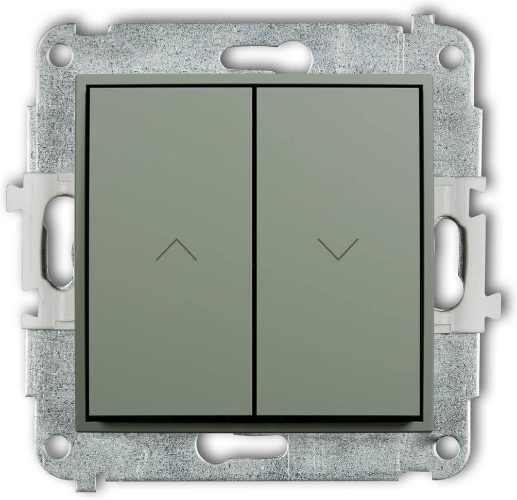 Łącznik żaluzjowy w kolorze szałwiowym z serii ICON, marki Karlik. Łącznik żaluzjowy z blokadą mechaniczną posiada dwa klawisze. Stosowany do żaluzji (podnoszenie/opuszczanie). Podnoszenie lub opuszczanie żaluzji następuje poprzez przełączenie klawisza (nie odbija). Pozwala na łączenie w obrębie dwóch oddzielnych obwodów, ale uniemożliwia łączenie ich jednocześnie. Do kompletu wymagana ramka. Można stosować do systemów ramkowych wielokrotnych. Łącznik należy stosować do żaluzji, która wyposażona jest w wyłącznik krańcowy. . Brak możliwości zastosowania modułu podświetlenia i uszczelniacza IP-44. #html-content-17#
