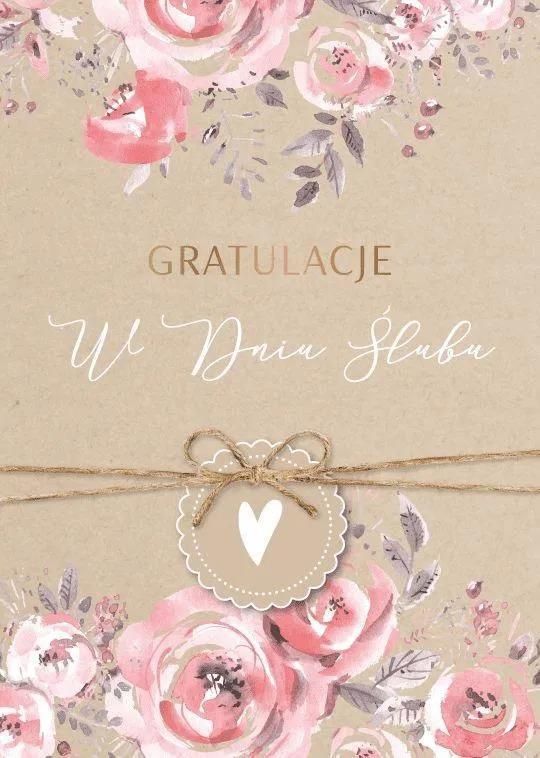 Karnet Ślubny z kopertą i tekstem wewnątrz i miejscem na osobiste życzenia. EAN: 5905815791790