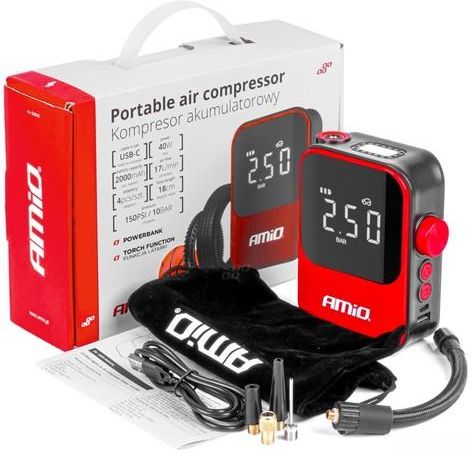 Kompresor samochodowy bezprzewodowy pompka elektryczna rowerowa powerbank 40W ACOMP-20 AMIO-03690 Oświęcim